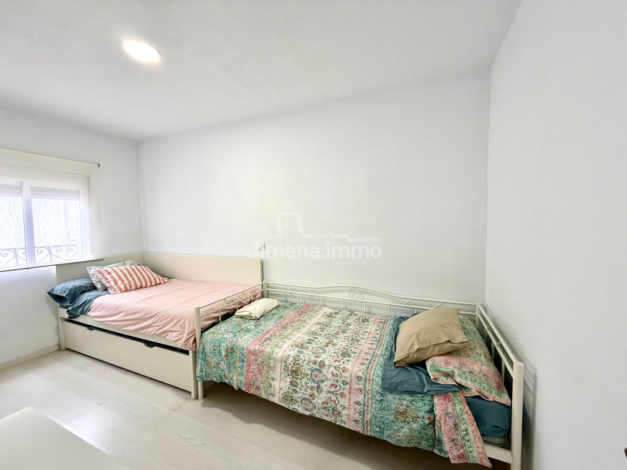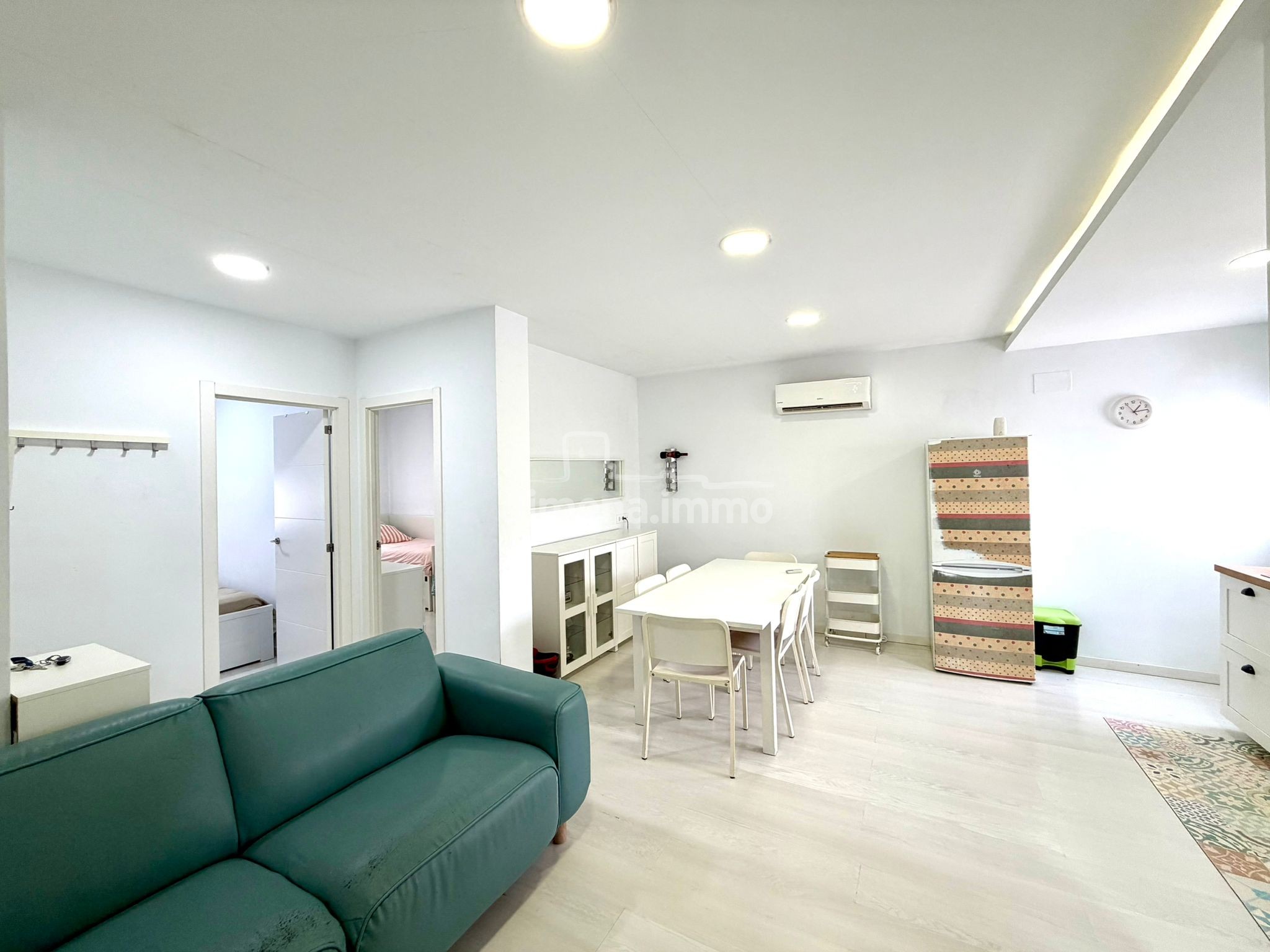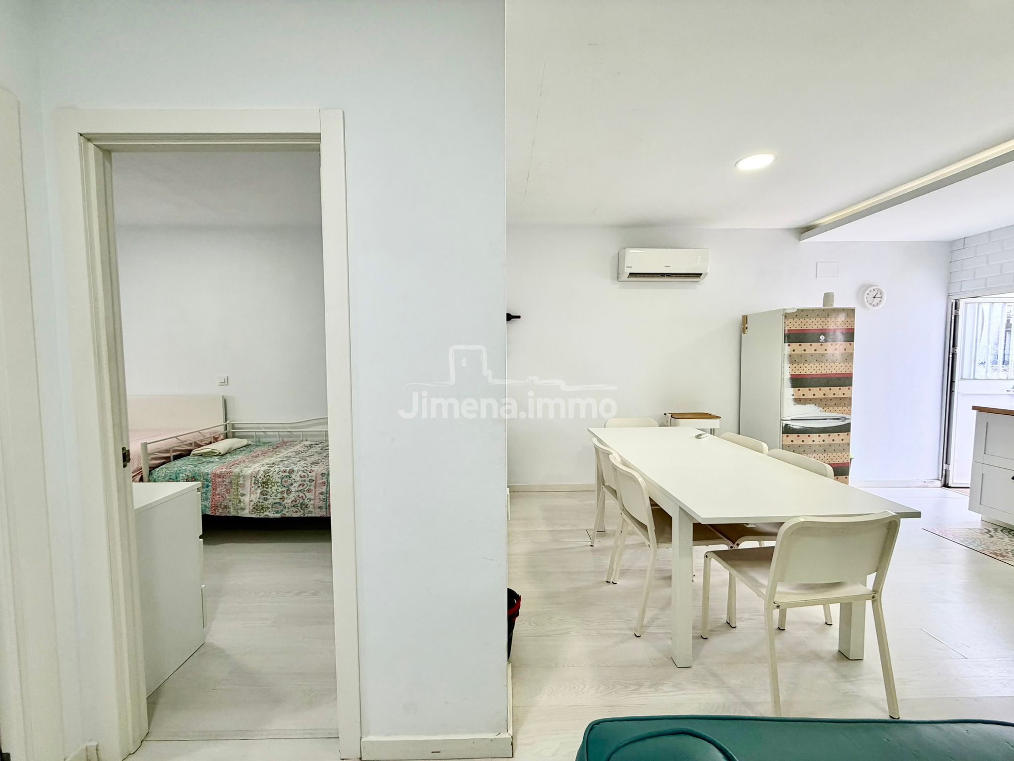 Dispone de dos dormitorios, un baño pequeño pero muy bien aprovechado, y un acogedor espacio abierto de salón, comedor y una cocina pequeña pero cómoda. La vivienda cuenta con aire acondicionado y se vende con todo su contenido.