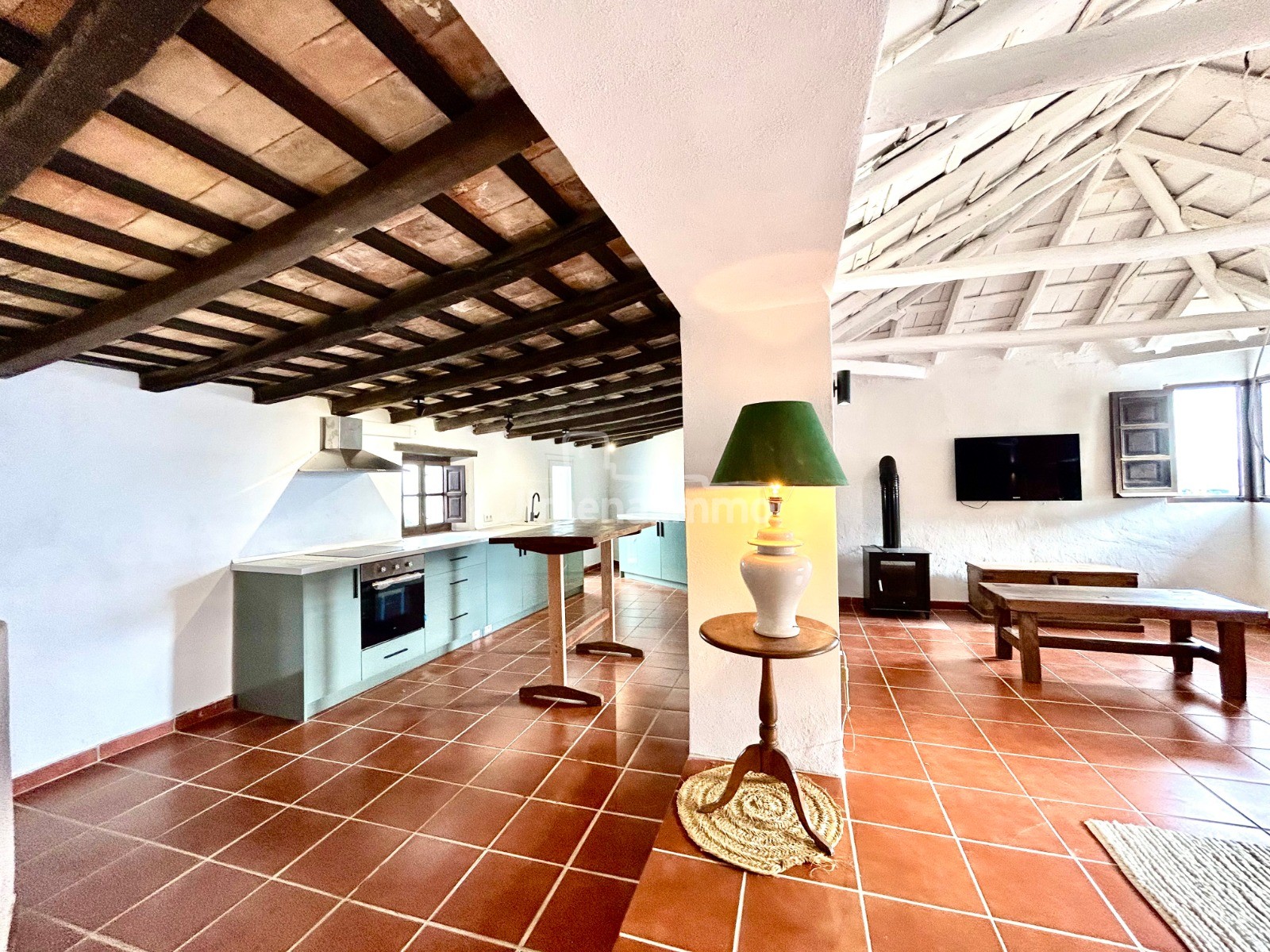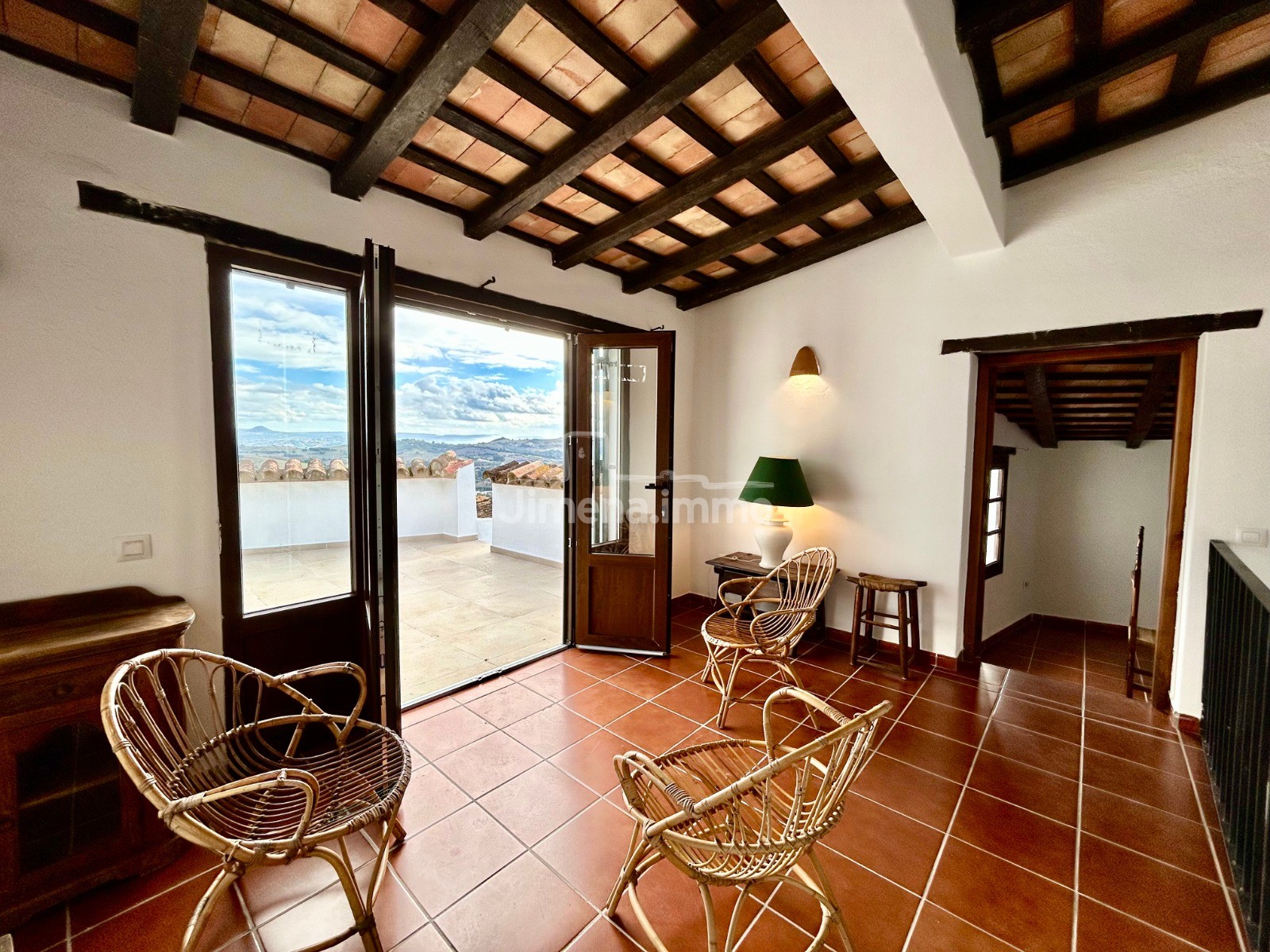 La casa se distribuye en varios niveles y destaca por su amplitud, luminosidad y encanto arquitectónico. Al acceder, un acogedor hall recibidor da paso a un dormitorio con baño en suite. Desde aquí se avanza hacia un segundo hall con un baño completo, que conduce a la planta principal: un espectacular salón–cocina–comedor, sin duda la joya de la vivienda. Su cubierta inclinada a dos aguas aporta carácter y amplitud, creando un ambiente cálido y único. El salón cuenta con estufa de leña nueva, y la cocina —también a estrenar— presenta un diseño moderno con isla central y acceso directo, mediante escalera, a la maravillosa terraza con vistas.