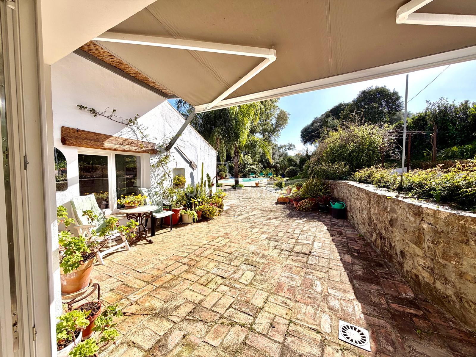 Outside, the property offers a well-maintained and attractive setting, with stone-paved terraces, extensive garden areas and lawns, as well as a wide variety of fruit trees that enhance the natural appeal of the property. A charming swimming pool is set within a cosy stone-paved patio, complemented by pleasant porches with wooden pergolas, ideal for enjoying the climate and countryside views.